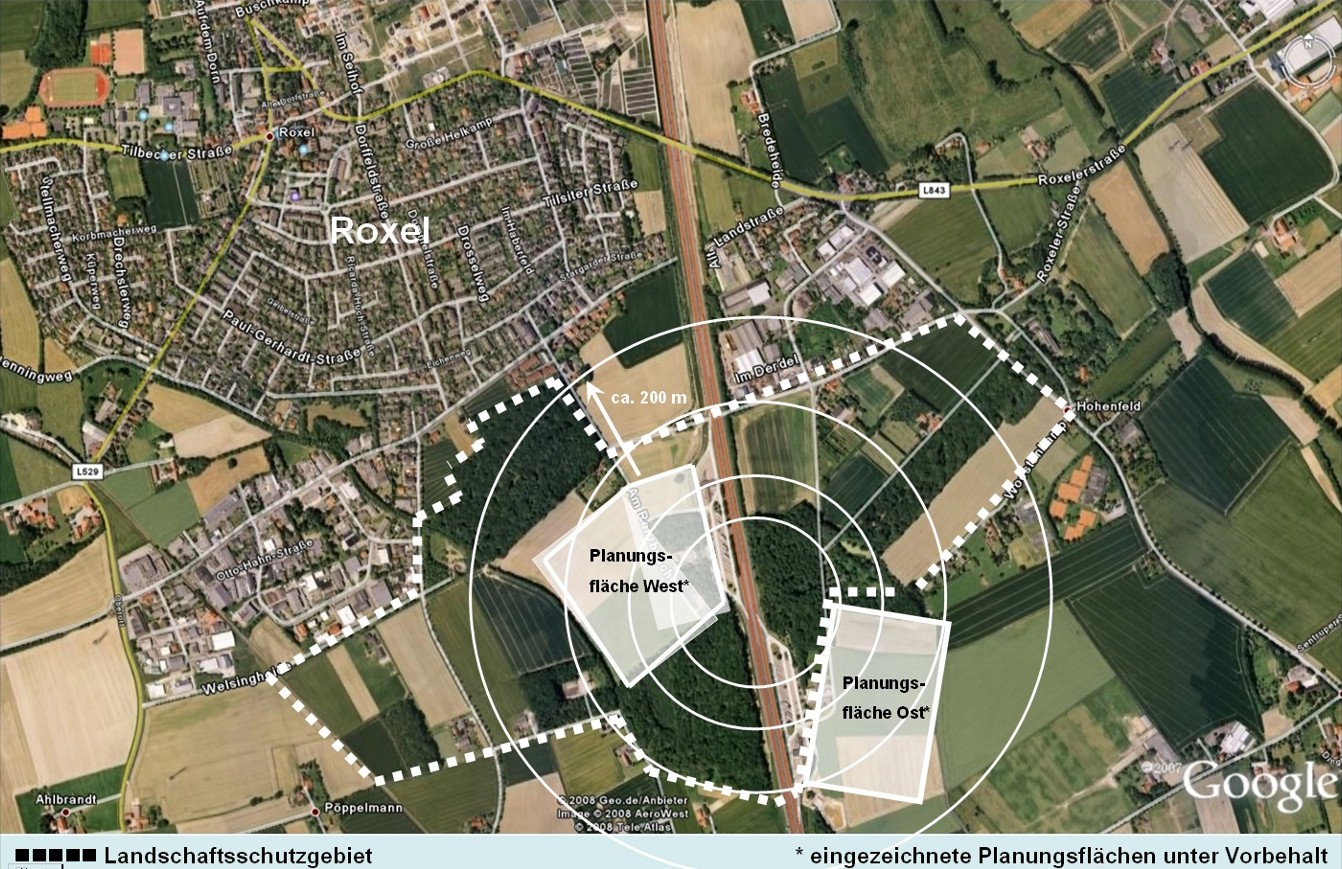 Der Bau der Rastanlagen würde für Roxel den Verlust des wichtigsten Landschaftsschutzgebietes bedeuten. Gerade der nahe gelegene Wald „Am Rohrbusch“ wird von Kindergärten, Schulen, Sportgruppen, Familien, Radfahrern und Hundebesitzern genutzt. Für sie alle ist der Wald ein wichtiger Ort zur Erholung, zum Lernen (Waldlehrpfad), für sportliche Aktivitäten und zum Kommunizieren. Darüber hinaus soll Roxel in den nächsten Jahren um 7.000 Einwohner auf ca. 14.000 wachsen.